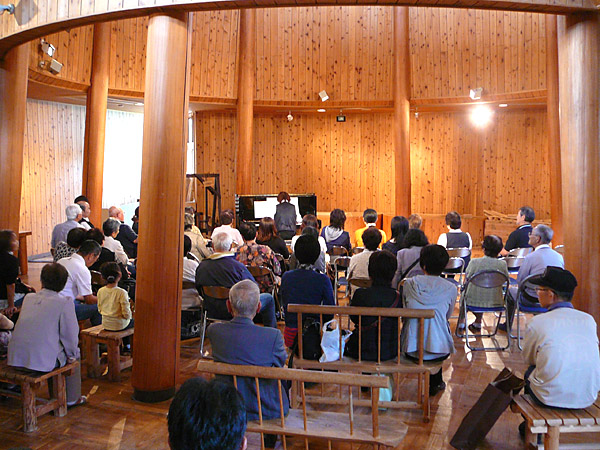 【EVA(P)とSATOMI(Vo)被災地巡礼コンサートの様子】(クリックで拡大)